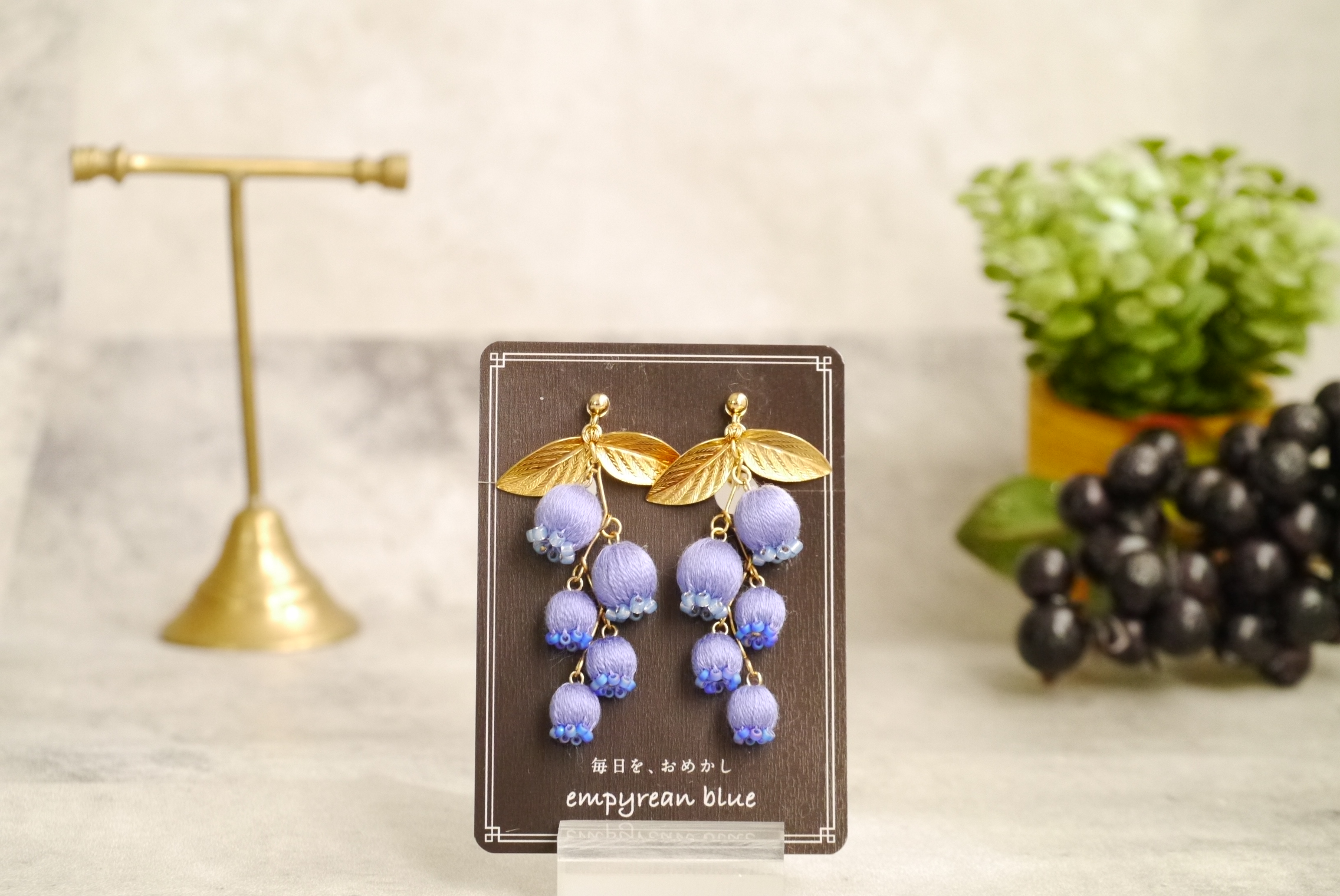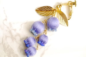 朝摘みブルーベリー お品書き 2025.10.142024.07.08 フレッシュブルーベリーの朝の輝き。 宝石のようなみずみずしい青い雫を 籠いっぱいに詰んで耳飾りに仕立てました🧺🫐 鮮度の高い色味で朝の爽やかな時間を感じる そんな耳飾りです。 お気に入りポイントは 8ミリと6ミリの巻き玉で出来た大小の動き。 繊細な巻き玉のサイズが楽しめちゃいます* ビーズで施したつぶつぶがまたリアルな質感なのです^^ 2125 I-123 朝摘みブルーベリー(イヤリング)※ピアス変更可 ¥9,980-