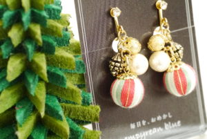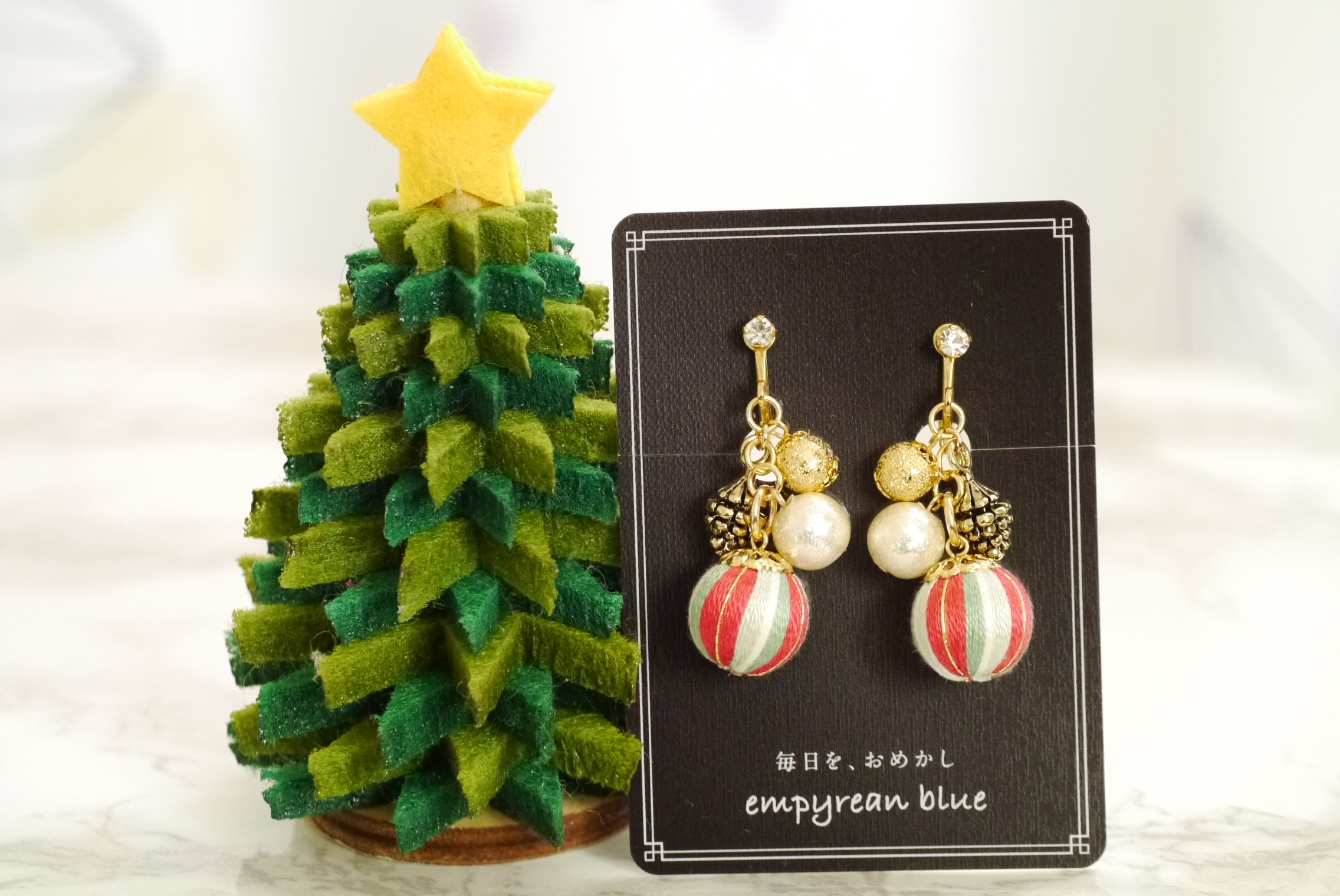 クリスマスツリーのオーナメントのような巻き玉イヤリング。.*:゚❆’゚:*。