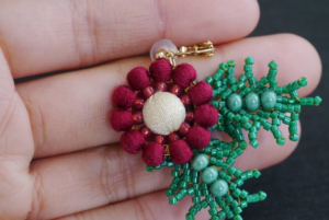 恋乙女〜赤椿〜 ギャラリー 2024.04.042023.01.20 幾重にも重なる大振りな花びらと 中央の蜜の集まりがなんとも艶美なお花です* 粒々蜜たちを表現したくて 中央の巻き玉はラメの糸を巻きました◌̥*⃝̣ 花びらは真っ赤ではなく深みのあるレッドを選び 艶っぽい、大人なアクセサリーに仕上げています✿ 「こいおとめ」と 少し大人になる女性にぴったりの お名前を付けてあげました* 2125 I-24 恋乙女〜赤椿〜(イヤリング) ¥15,720- ※ピアスへの金具変更可能