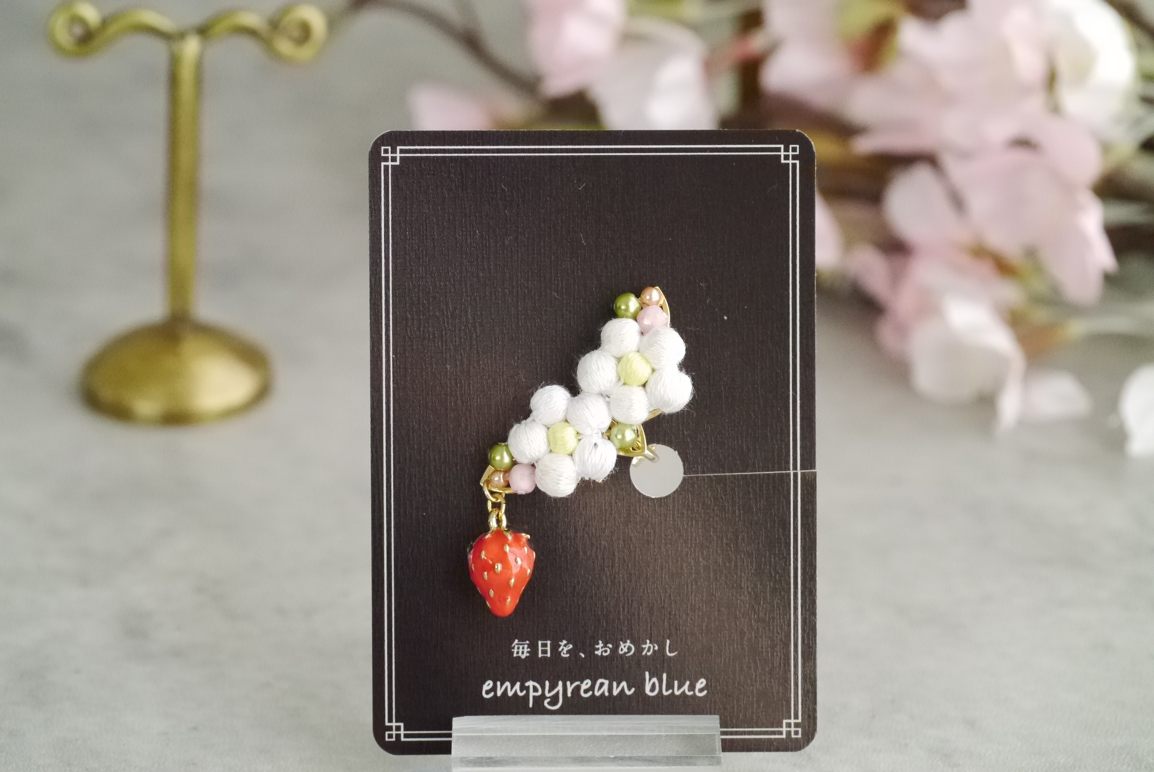春のイチゴ摘み-イヤークリップ(左耳用)- soldout 2025.01.172024.04.06 ちぃまぃ5枚花が めちゃんこ可愛いイチゴのお花₊❀̥୭ まだ完熟していない ピンクの姉妹いちごたちが 見え隠れするデザインにしてみました💐 春のイチゴ狩りやお散歩のオトモに♪ 2125 I-66 春のイチゴ摘み-イヤークリップ(左耳用)- ¥7,800-